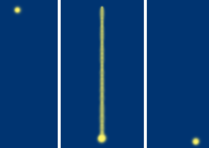 You would have thought it disappeared and reappeared rather than actually travel down, if it was not for a perfectly vertical streak of light it left behind it as it descended downwards, to above the roof tops.